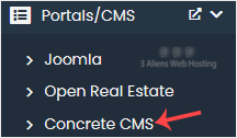 4. On the left side, type Concrete CMS in the search box, then click the Concrete CMS link that appears.
