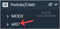 4. On the left side, type e107 in the search box, then click the e107 link that appears.