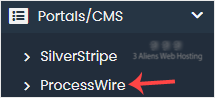 4. On the left side, type ProcessWire in the search box, then click the ProcessWire link that appears.