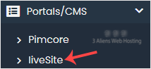4. On the left side, type liveSite in the search box, then click the liveSite link that appears.